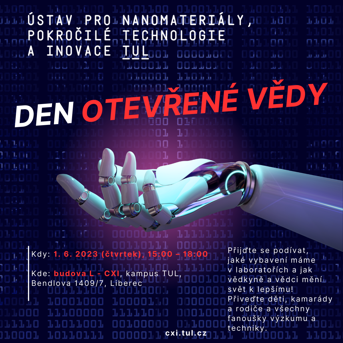 We cordially invite all science and research enthusiasts to an unforgettable Open Science Day to be held on June 1 from 3-6 pm at CXI. Join us and enjoy an afternoon of fun, learning and inspiration.