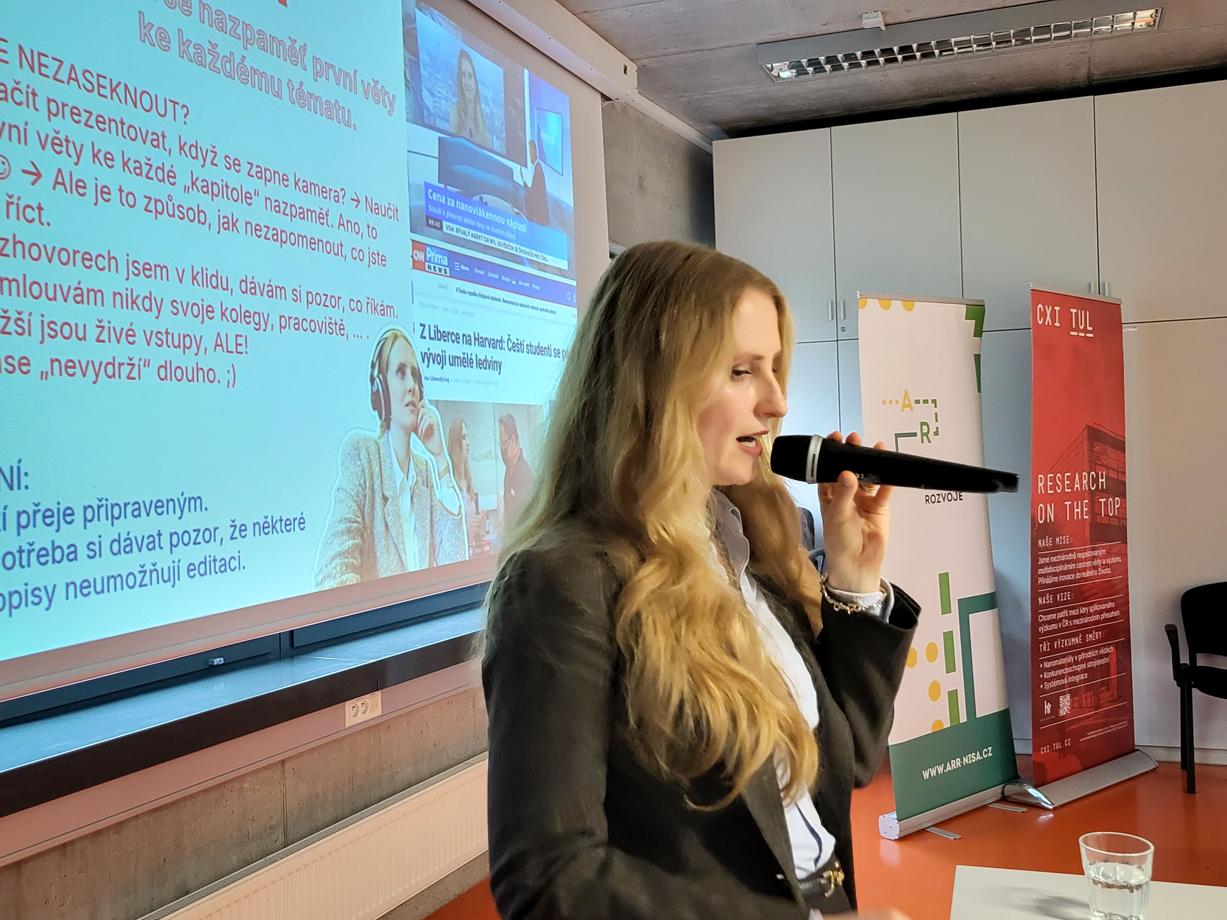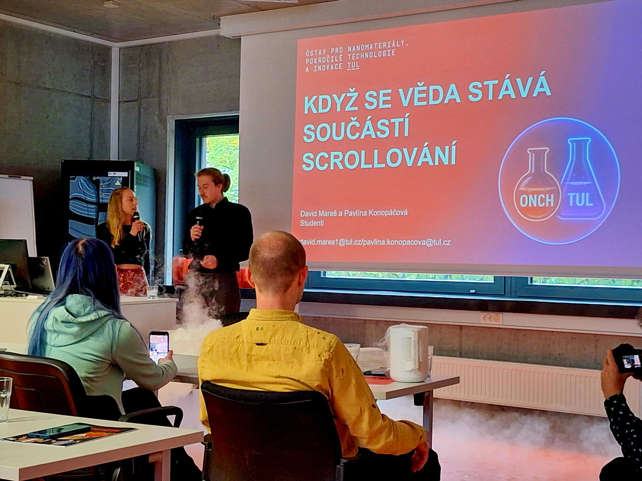 Pavlína Konopáčová and David Mareš from CXI TUL gave a modern lecture on how to turn a nanochemistry department into a successful Instagram account. Its content is followed by thousands of people and its videos reach millions of views. But it didn't happen overnight. They started with experiments, blind alleys and unsuccessful formats. Today, they can advise others on how to humanise scientific content, i.e. how to transform it into visually attractive messages that will appeal even outside the academic environment.