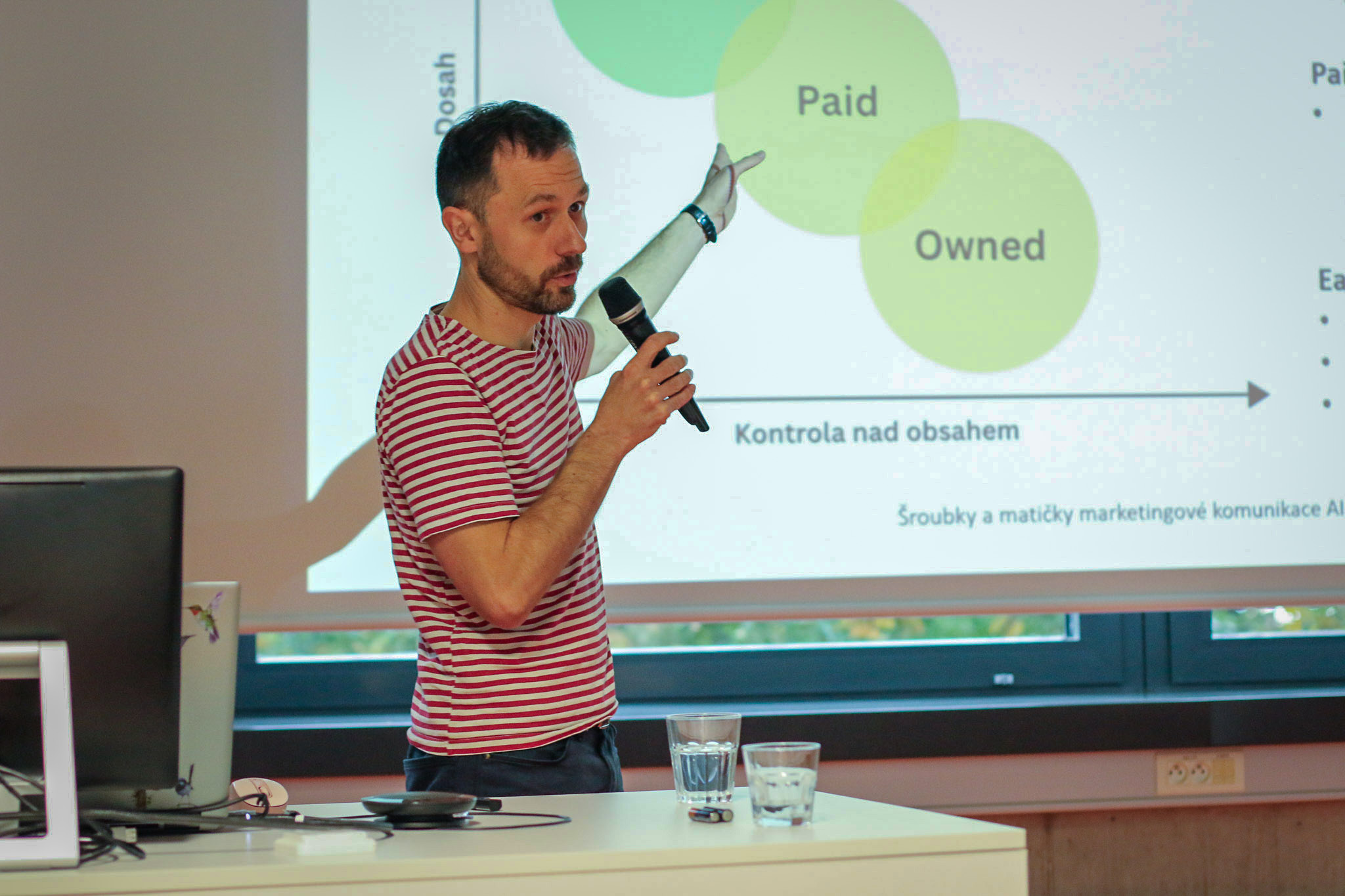Lukáš Jokl from ARR Liberec explained the difference between earned, owned and paid media and shared specific tips on how to generate media interest without a large budget. He described everything using the example of the product strategy of the Spanish university spin-off Robic: the only AI social robot certified in Europe as a medical device. It gained enormous earned media support thanks to appropriately chosen communication. "If you have nothing to talk about, keep quiet. If you do, speak clearly and loudly," he reminded us, among other things.