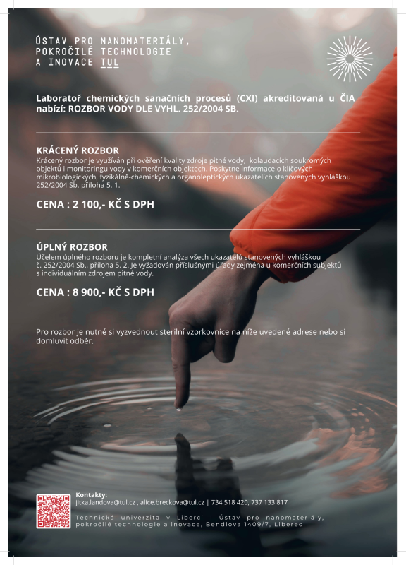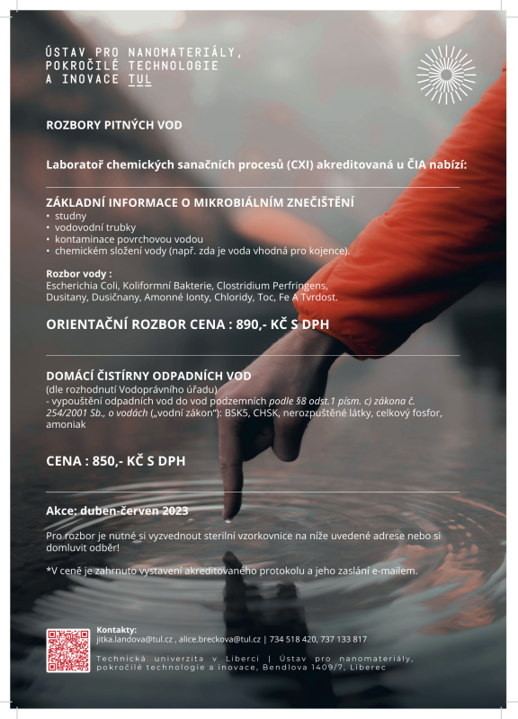 Každý den pijeme vodu a často si vůbec neuvědomujeme, že kvalita naší vody, kterou pijeme nejen doma, může být ovlivněna mnoha faktory. Pokud máte studnu, kterou používáte k zásobování domácnosti vodou, ujistěte se, že je bezpečná pro vaše použití a nechejte si vodu analyzovat. Třeba v Laboratoři chemických sanačních procesů na Technické univerzitě v Liberci (konkrétně Ústavu pro nanomateriály, pokročilé technologie a inovace, zkráceně CXI). Laboratoř se specializuje na analýzu mikrobiálního znečištění a chemického složení vody a je akreditovaná u Českého institutu pro akreditaci.
