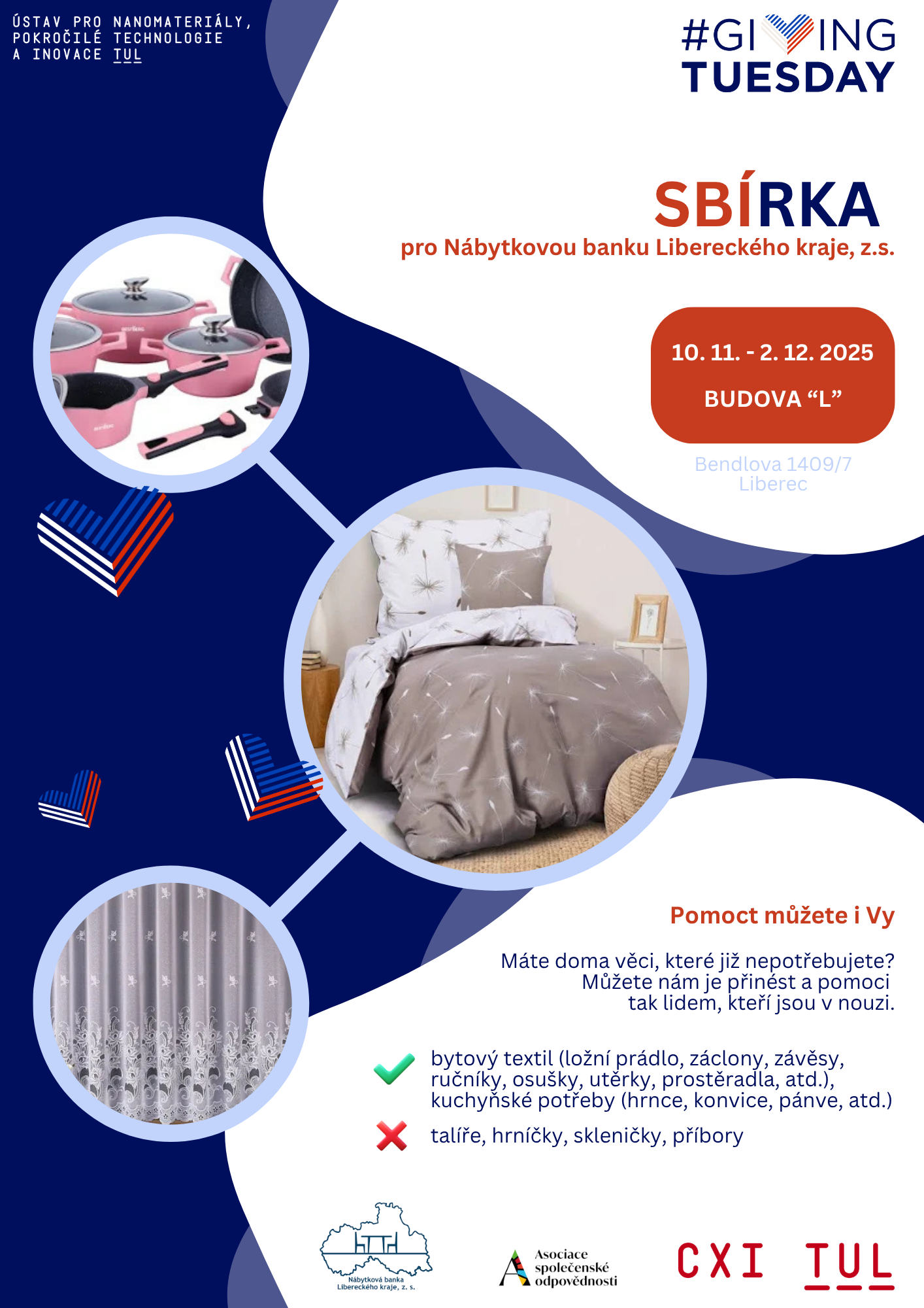 Ústav pro nanomateriály, pokročilé technologie a inovace Technické univerzity v Liberci (CXI TUL) se letos poprvé zapojuje do mezinárodního hnutí Giving Tuesday – svátku dobrých skutků, který inspiruje lidi po celém světě k pomoci druhým.
