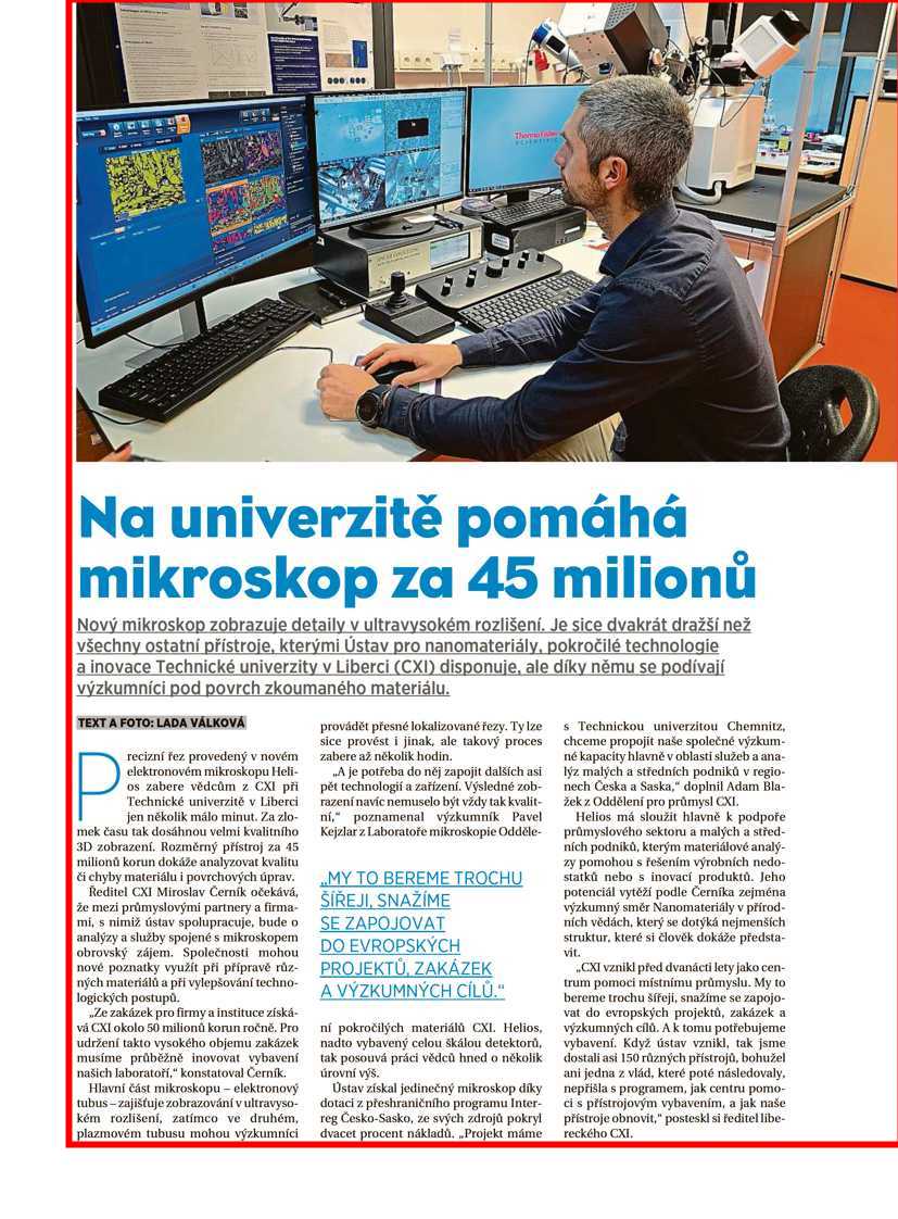 - Novinky.cz: Odhalí i nejmenší vadu materiálu. Schopnosti unikátního mikroskopu nabídnou liberečtí vědci firmám